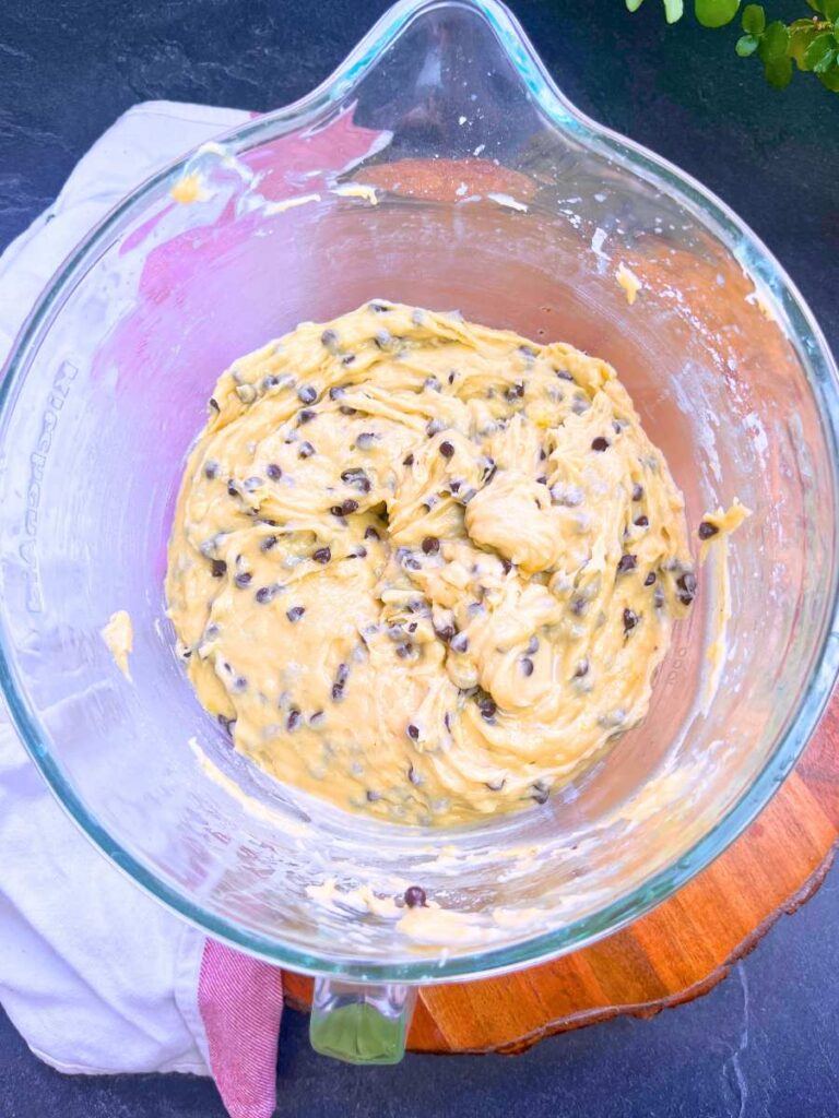 11. Mix until the batter just comes together. Make sure to scrape down the bottom and sides of the bowl halfway through to make sure everything is getting mixed in evenly.