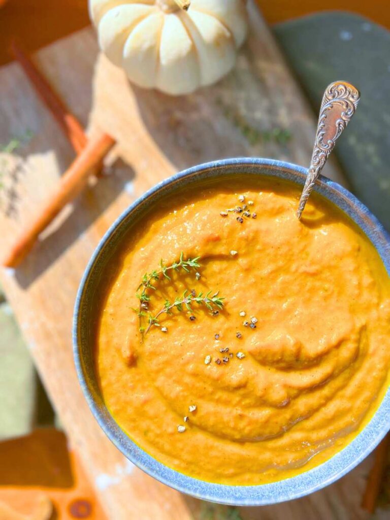 The perfect velvety texture and warm fall flavours. This quick and easy soup is perfect for adding your favourite toppings.
