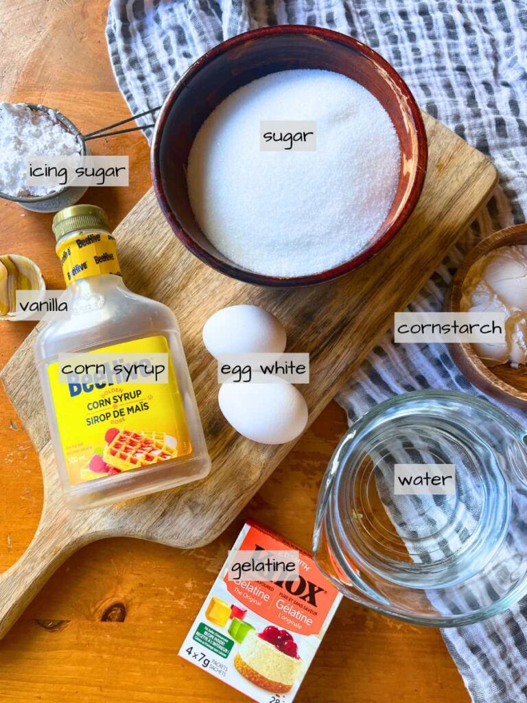 Corn syrup – This is not the same as high-fructose corn syrup. It gives marshmallows a soft and bouncy texture. It also prevents crystalization of the sugar for a smoother texture.