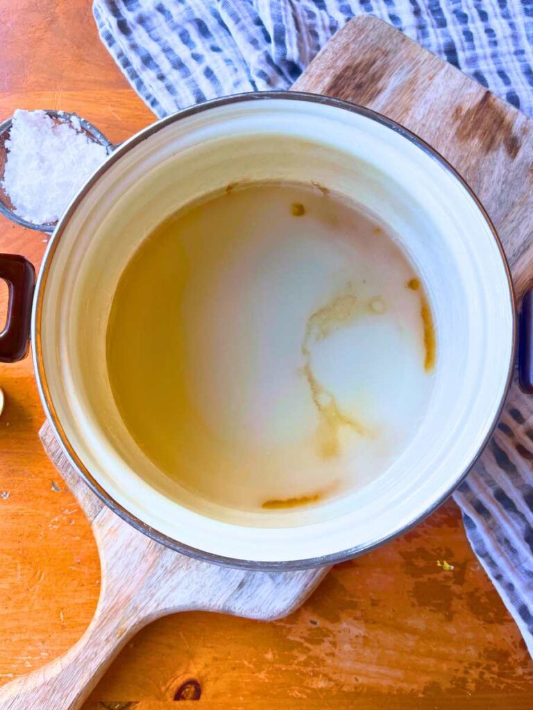 3. Stir to dissolve the sugar, then allow it to boil until it reaches 240 °F ( 115 °C) or soft ball. *This step requires caution! Cooking sugar is very hot and can easily burn you if it touches you skin.