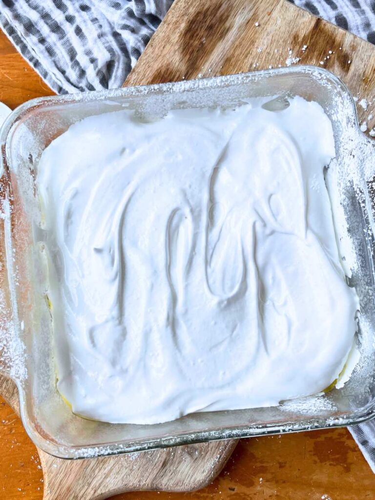 - Spread the marshmallow mixture into the prepared pan and set aside for several hours to solidify.