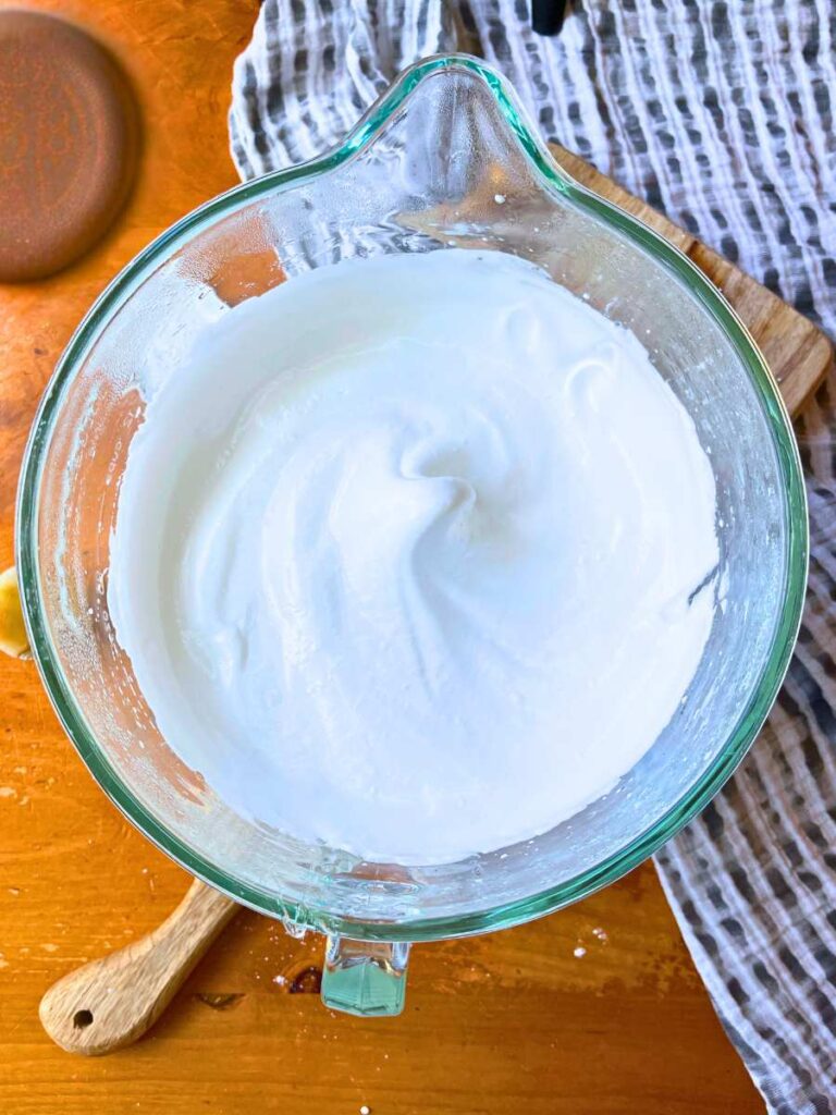 9. Continue to whip the mixture until it holds a thick mass that holds its’ shape. This can take several minutes.
