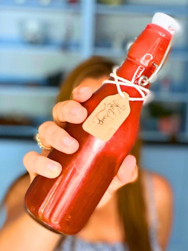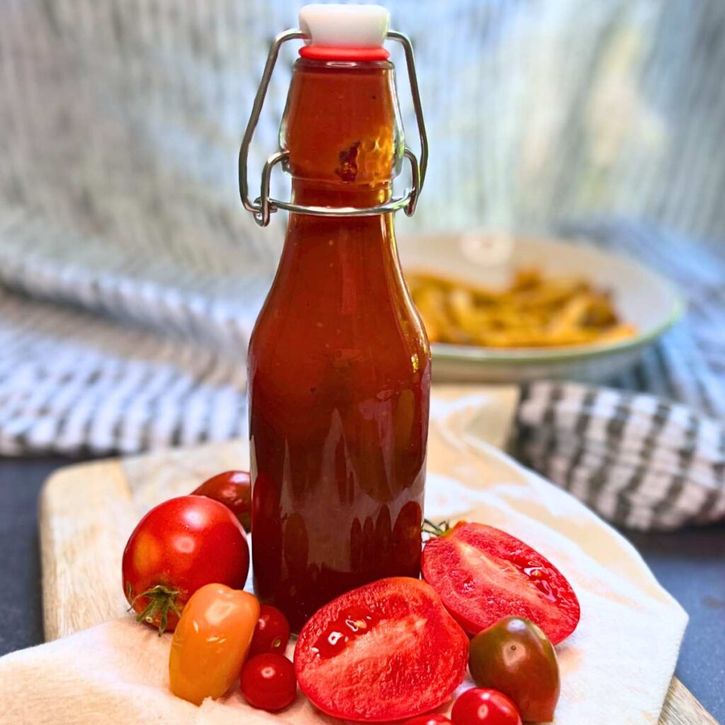 Make your own homemade tomato ketchup with just a few wholesome ingredients! This recipe uses fresh tomatoes straight from the garden and is naturally sweetened with honey for a clean, preservative-free version of your favourite sauce.