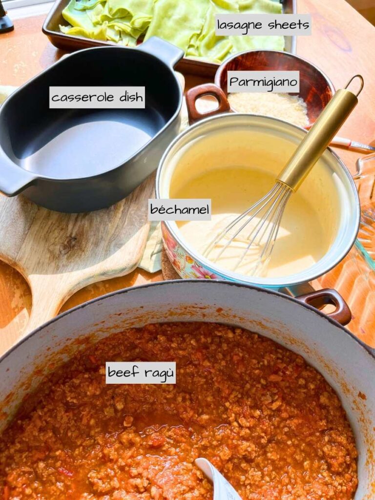 Lasagna al forno is made with a creamy white béchamel sauce.