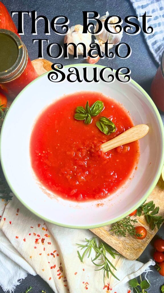 This easy homemade tomato sauce is made with only fresh garden tomatoes, olive oil, and herbs. Which makes it perfect for using in a variety of recipes like pasta, pizza, soups, and stews!